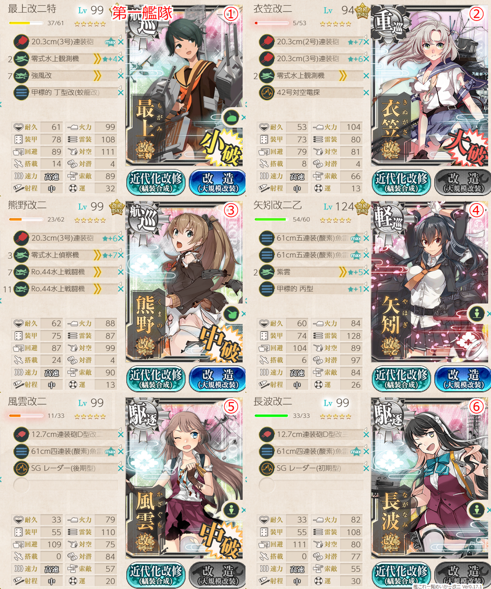 A勝利4(804=320)千歳は甲になったものをそのまま投入した.レベルが低いため索敵がカツカツ.